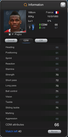 Pemain Prancis ini masih muda , berbakat, dan memiliki masa depan yang cerah . Memiliki atribut pertahanan yang baik dan kemampuan untuk meningkatkan atribut dengan cepat , P. Pogba bisa menjadi wonder kid di tim kalian.
